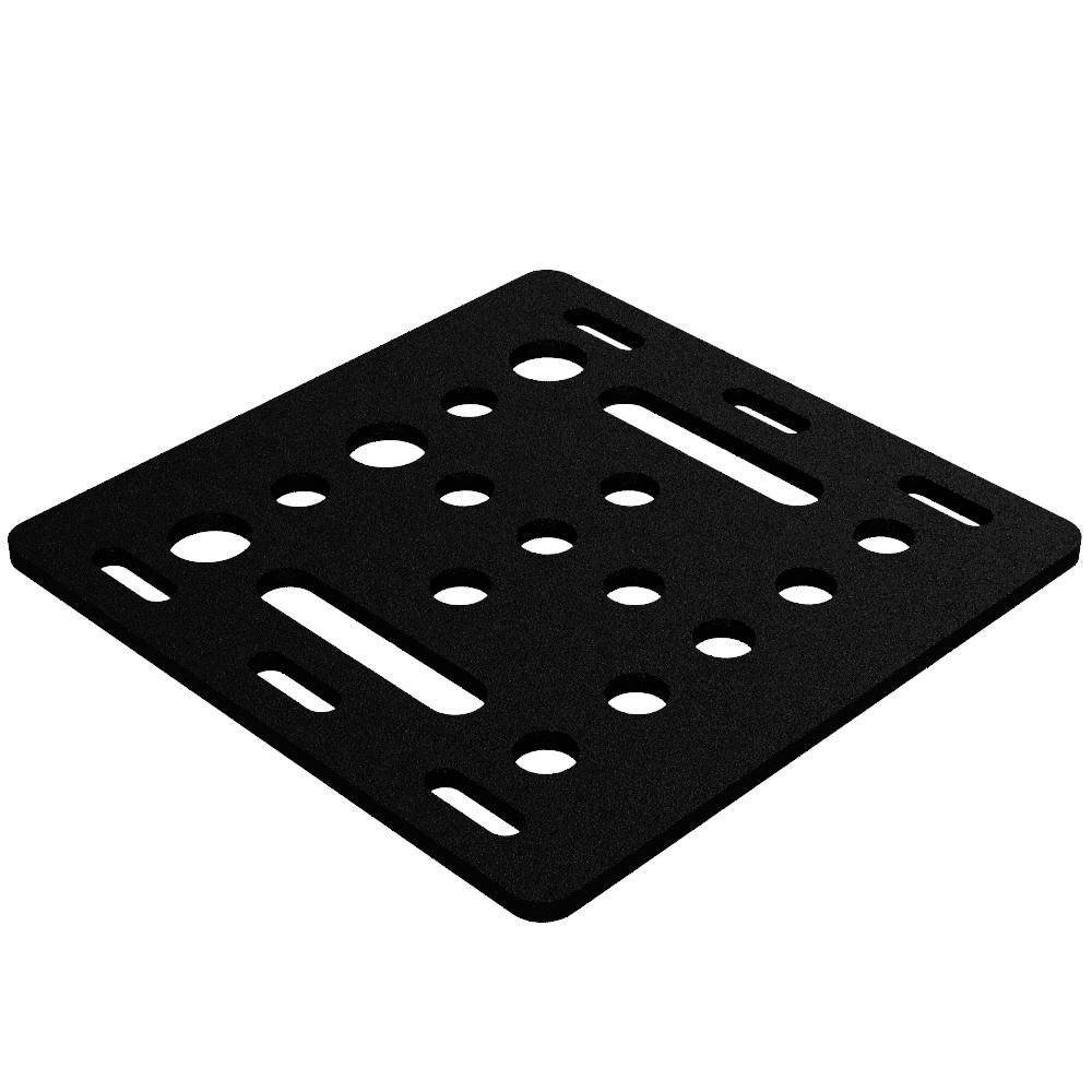 - 5mm slots suitable for spacers to accompany a 90 degree belt mount on either side of the plate